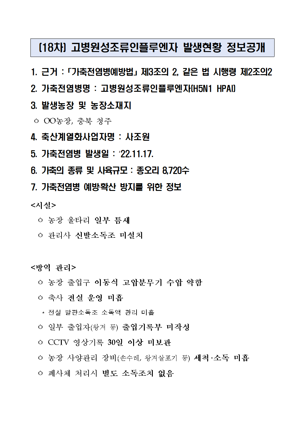 18차 H5N1 HPAI 발생현황 및 미흡사항 정보공개.hwpx