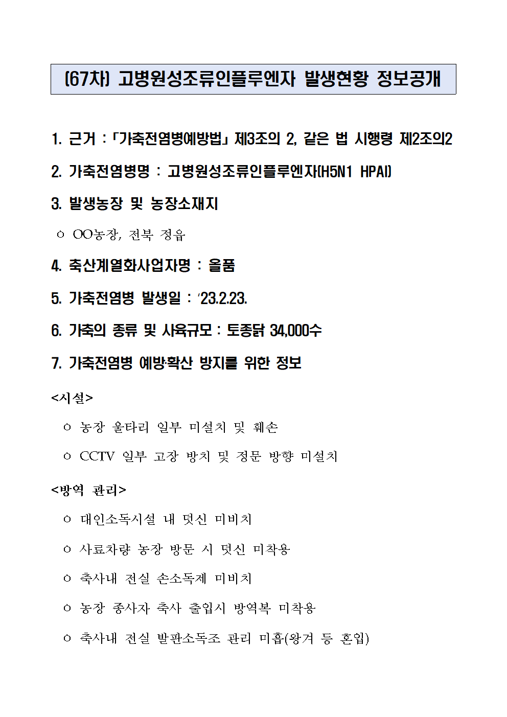 67차 H5N1 HPAI 발생현황 및 미흡사항 정보공개.hwpx