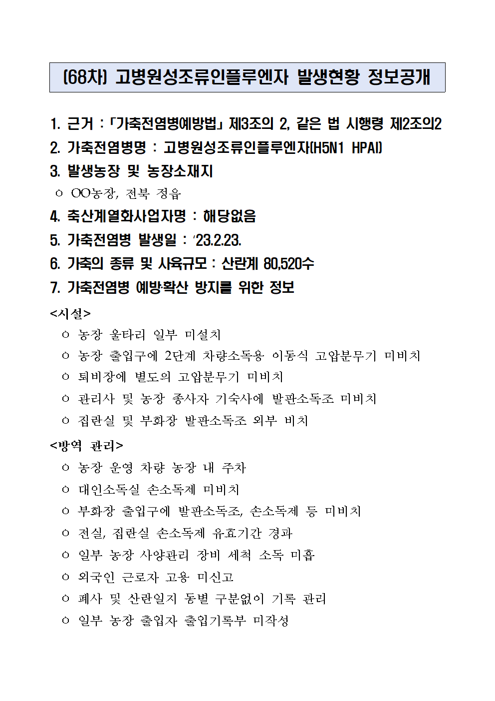 68차 H5N1 HPAI 발생현황 및 미흡사항 정보공개.hwpx