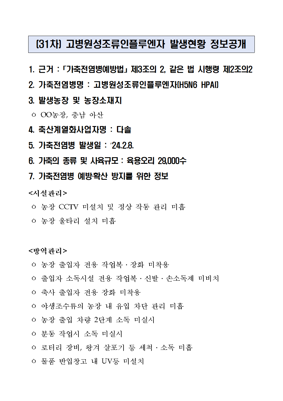 31차 H5N6 HPAI 발생현황 및 미흡사항 정보공개001.png