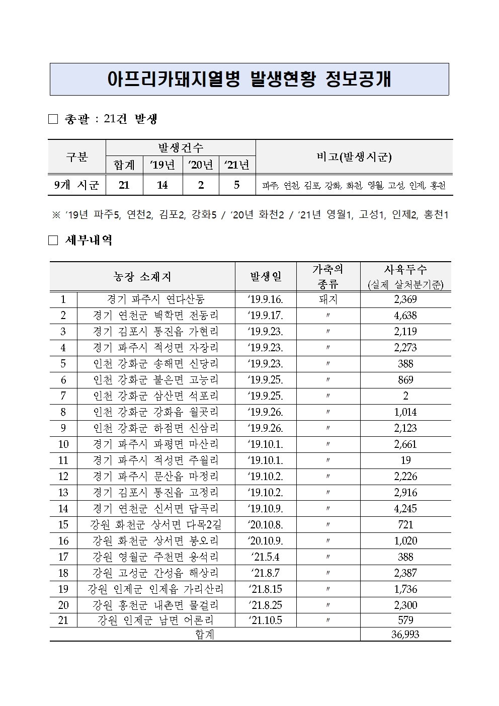 '19~'21년 ASF 발생현황 정보공개.hwp