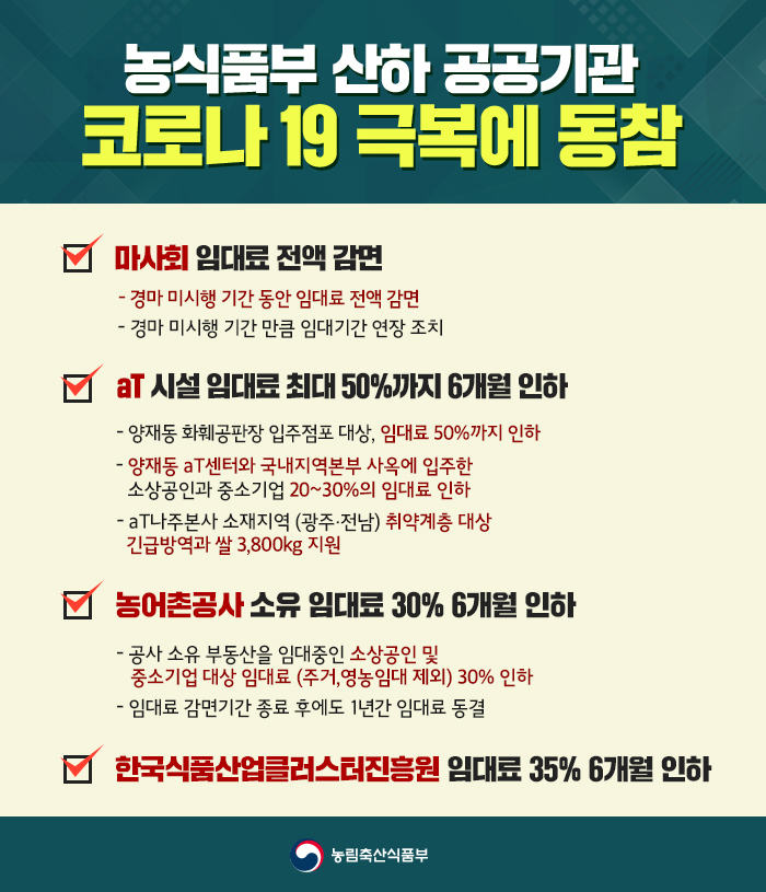 농식품부 산하기관 코로나 극복 동참(착한임대료)